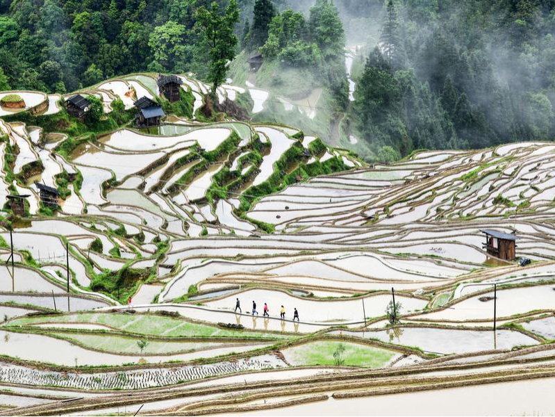 Dans la station de métro Opéra de Paris, plusieurs passants pressés se sont arrêtés inopinément pour contempler les immenses affiches présentant les paysages et les éléments culturels de la province du Guizhou, dans le sud-ouest de la Chine.