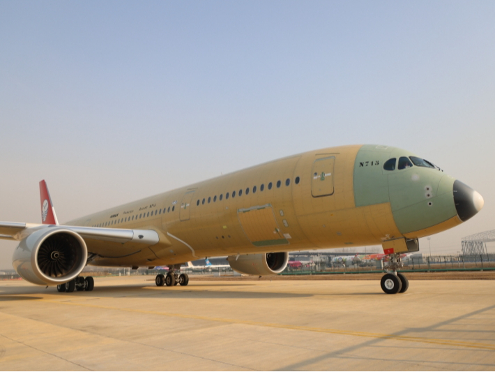 Un Airbus A350 sans livrée a atterri mardi à Tianjin, dans le nord de la Chine, en provenance de Toulouse, en France. Il s'agit du premier appareil de ce type à être accueilli en Chine pour l'année 2025.